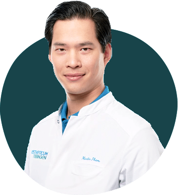 Während der Operation überprüft das Tübinger Operationsteam ständig die Symmetrie, um für ein ästhetisches und sicheres Ergebnis zu sorgen. Die feinsten, größtenteils unter dem Hautniveau verlaufenden Hautnähte werden zusätzlich durch spezielle Pflasterverbände fixiert. Direkt im Anschluss an den Eingriff wird die schon während der Operation begonnene Kühlung der Augenpartie fortgeführt. Nach der Operation sollte körperliche Ruhe eingehalten werden.
